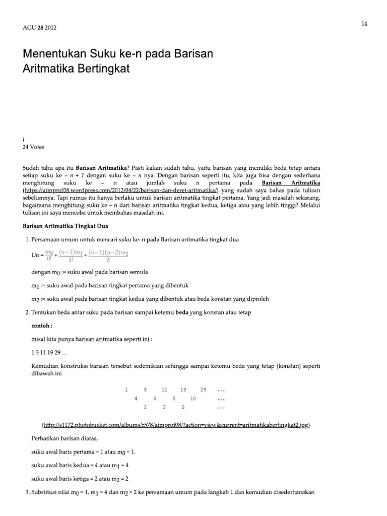 Pada episode kali ini kak wahyu membahas materi deret aritmatika, berikut kak wahyu berikan variasi contoh soalnya plus. Untuk deret aritmatika tingkat 1 gunakan rumus. Namun ternyata pada kurikulum 2013 materi ini merupakan salah satu prediksi materi soal yang akan diujikan pada un smp 2018. Rumus aritmatika atau bisa di sebut juga dengan barisan aritmatika di bagi menjadi beberapa macam yang pertama ialah rumus aritmatika bertingkat sosial sn tingkat 2 aritmatika suku ke n. Barisan aritmetika tingkat kedua biasa ditemui pada soal tkpa mengenai pola bilangan.