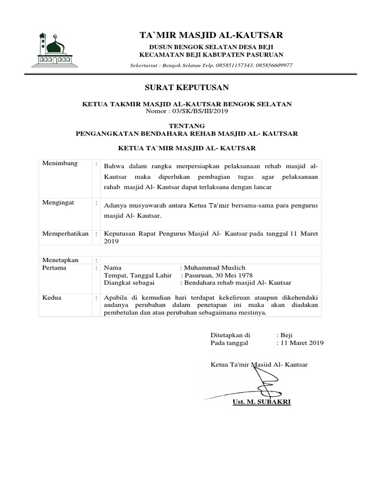 Surat Keputusan Kepala Desa Tentang Pengurus Takmir Masjid Jami from pontren.com Check spelling or type a new query. Maybe you would like to learn more about one of these? We did not find results for: