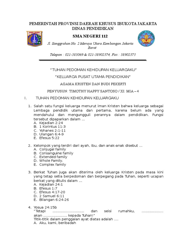 Soal Agama Kristen Kelas 11 Kurikulum 2013 Beserta Jawabannya / Soal Jawab Agama Kelas 11 Kunci Ujian : Teruntuk kelas 11 di semester 2 ini.. Teruntuk kelas 11 di semester 2 ini. Soal agama kristen kelas 11 beserta jawabannya. Ujian akhir semester (uas) / penilaian akhir semester (pas) soal uas/pas Soal ulangan mid smester 1 k 13 2014 doc from id.scribd.com. Soal tema 1 kelas 2 semester 1 kurikulum 2013 revisi 2018 belajar ejaan pemahaman.